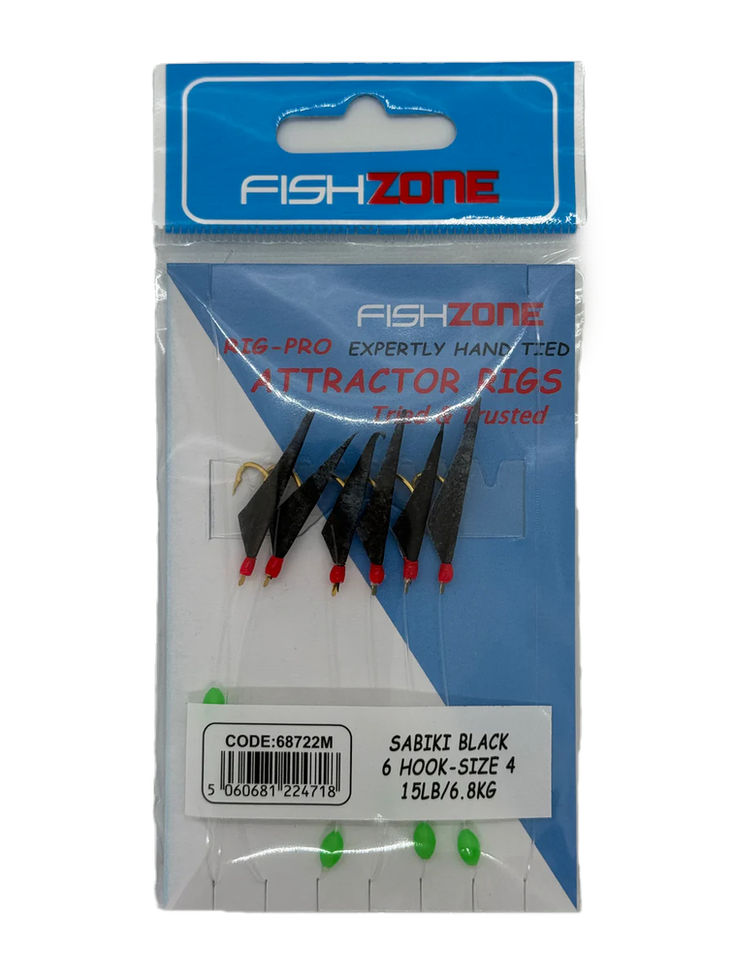 Size 6 hooks Size 4 on 15lb line. 5 lures per rig.
